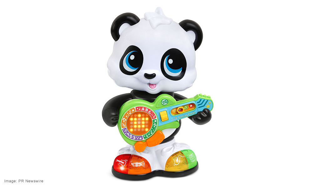 Learn & Groove Dancing Panda has the panda which can dance and groove and the LED screen on his guitar lights up with shapes, letters and numbers with four play modes. Press the musical instrument buttons on Panda’s light-up shoes to hear a saxophone, trumpet, drum and guitar. Toggle the bridge switch to scroll through numbers 1-10 and letters A-Z, while the whammy-bar music button on Panda’s guitar selects dozens of different tunes, including songs about numbers, shapes, colors, letters and musical instruments.