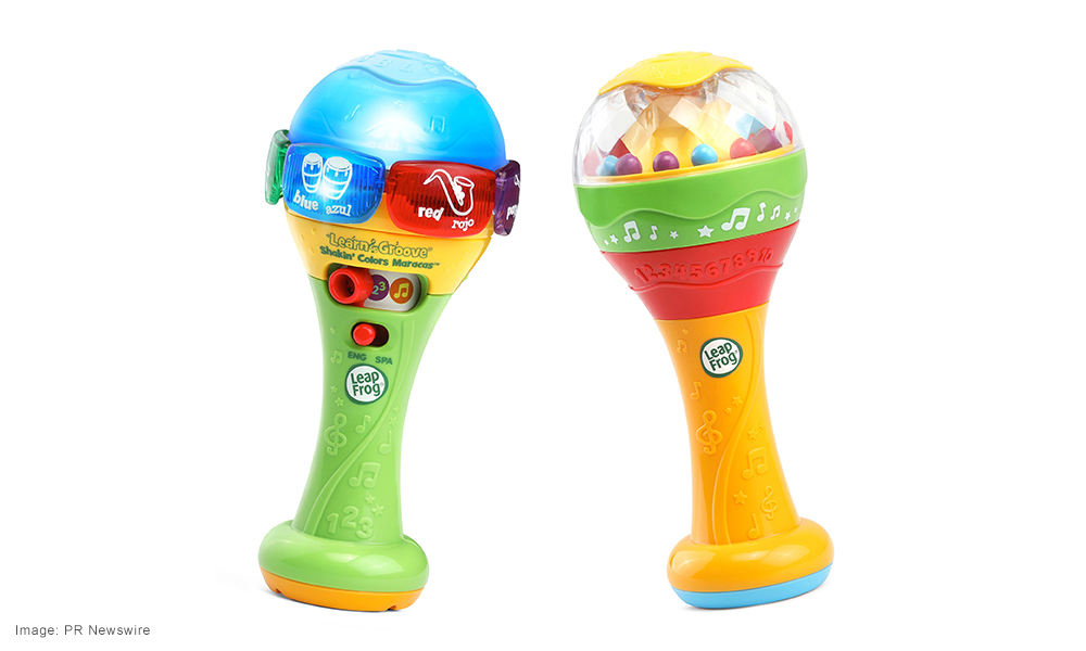 Learn & Groove Shakin’ Colors Maracas: One maraca includes colorful shaker beads and the other features a light-up dome that changes colors and plays maraca sound effects. This musical toy includes three play modes that introduce colors, numbers and music. Little ones can add rattling sounds to the songs that play, count from 1-10 with every shake and press the six light-up buttons to hear color and instrument names.